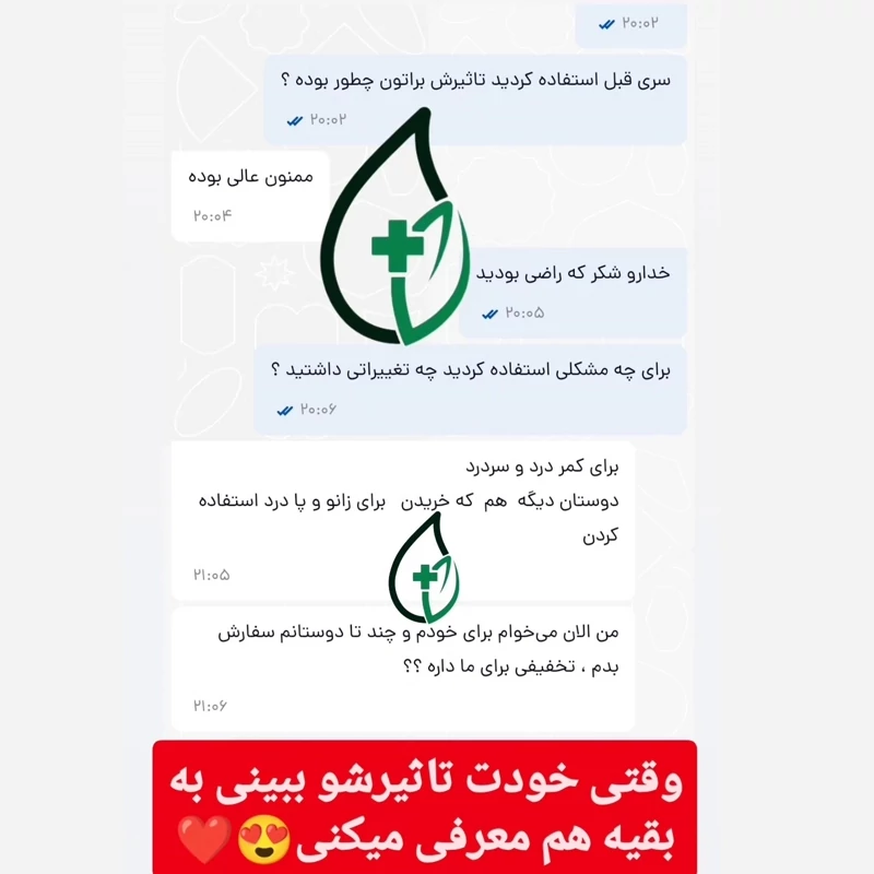🌱حاوی نانو ذرات و یون های ترمیمی ک علاوه بر تسکین درد باعث ترمیم بافت آسیب دیده میشه ،شما بلافاصله بعد از مصرف تاثیر بی نظیر هلکسیر رو متوجه خواهید شد و از همه مهم تر طی مدت زمان 21 روز کاملا بهبود پیدا میکنید